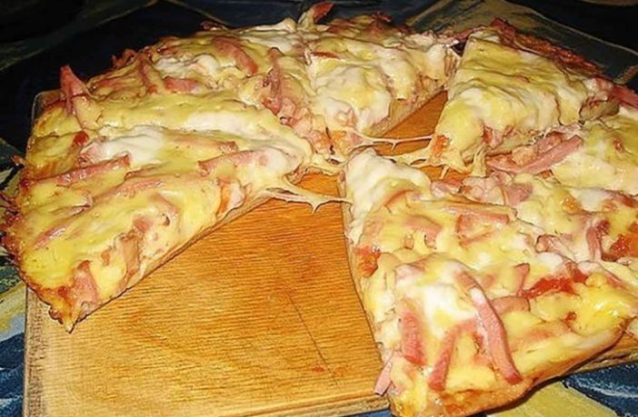 Cand se rumeneste pe la margini blatul si cascavalul e bine topit, da tigaia de pe foc, feliaza pizza cat e ferbinte si… pofta buna!
