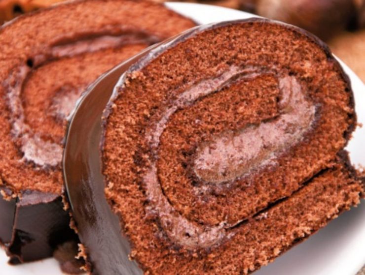 4. Pentru glazura de ciocolată, frişca lichidă se încălzeşte şi se toarnă peste ciocolata ruptă bucăţi. Se amestecă şi se toarnă peste ruladă. Se lasă să se usuce puţin şi apoi se dă rulada la rece pentru 2 ore.