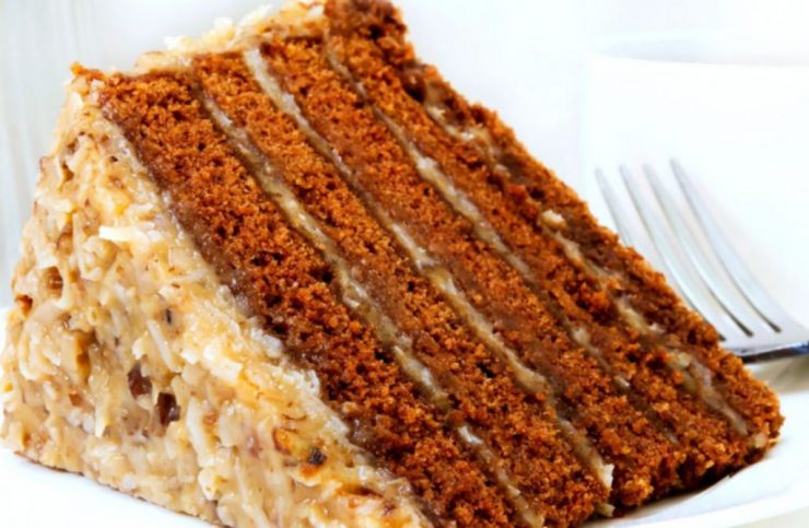 Într-o cratiță mare care nu lipește, combină laptele condensat și amidonul. Amestecă. Adaugă zahărul, gălbenușurile, untul/margarina și esența de vanilie. Pune cratița pe aragaz la foc mic spre mediu, până ajunge la o ușoară fierbere. Amestecă ușor și constant până începe să se îngroașe – aproximativ 12 minute de când începe să fiarbă. Dă de pe foc. Adaugă fulgii de cocos și nucile/alunele și amestecă bine. Dacă dorești să aibă un plus de aromă coaptă, poți trage ușor la tigaie nucile/alunele pecan înainte. Lasă crema la răcit cam o oră înainte de a o întinde pe blaturile deja răcite, în stilul clasic: blatul 1, cremă, blatul 2, cremă, blatul 3, cremă/glazură.